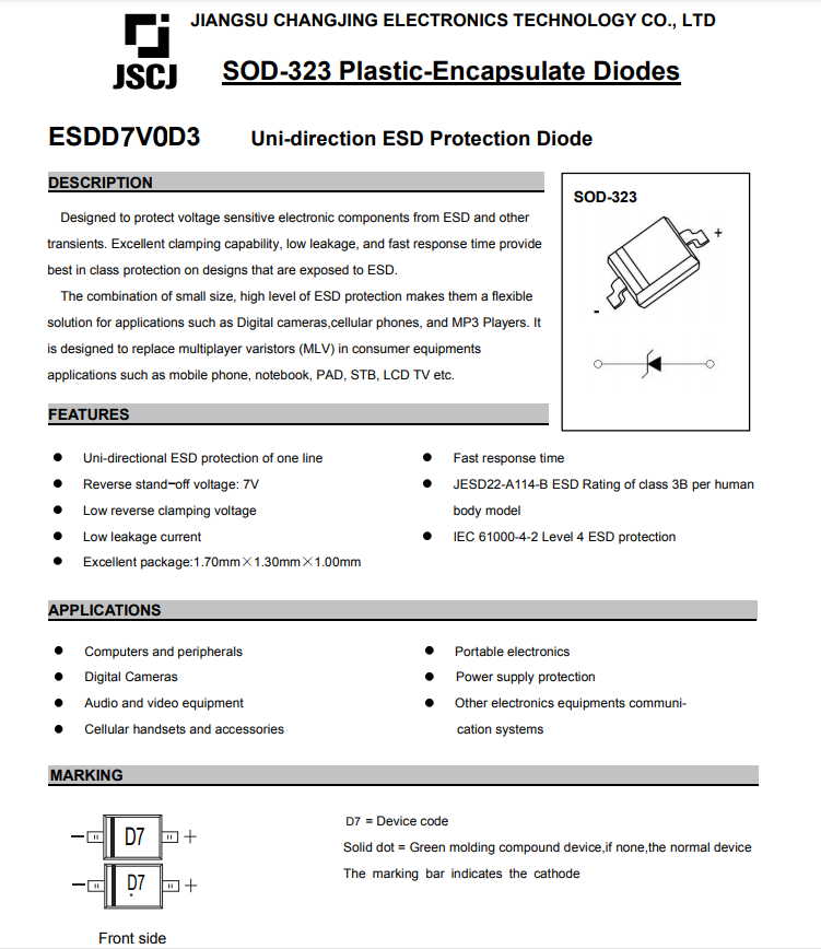長(zhǎng)晶半導(dǎo)體 ESDD7V0D3
