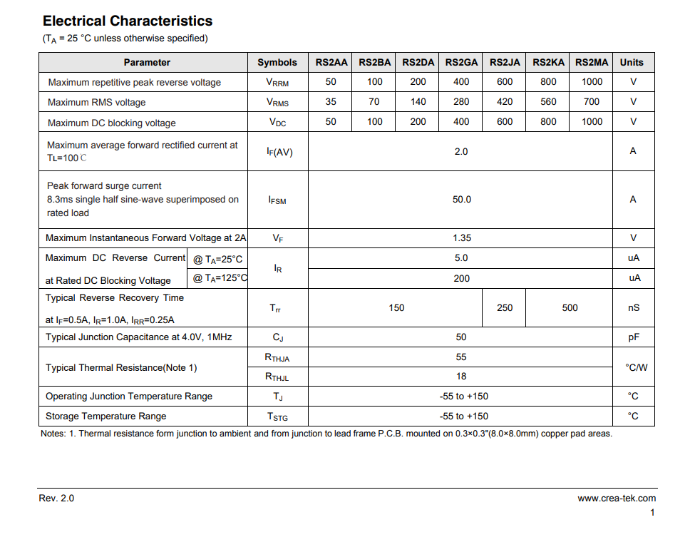 達晶微 二三極管 RS2AA Thur RS2MA
