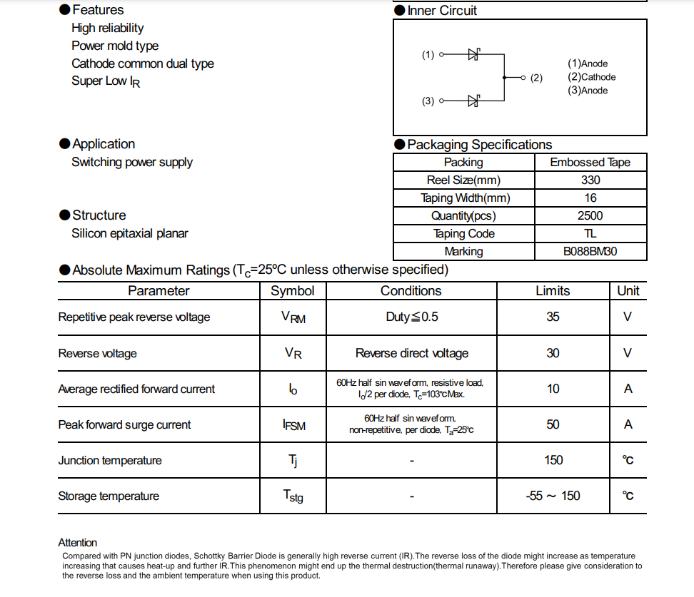 羅姆 半導(dǎo)體/碳化硅 RB088BM-30
