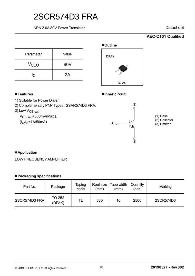 應(yīng)用領(lǐng)域:低VCE(sat)功率晶體管,適合低頻放大用途