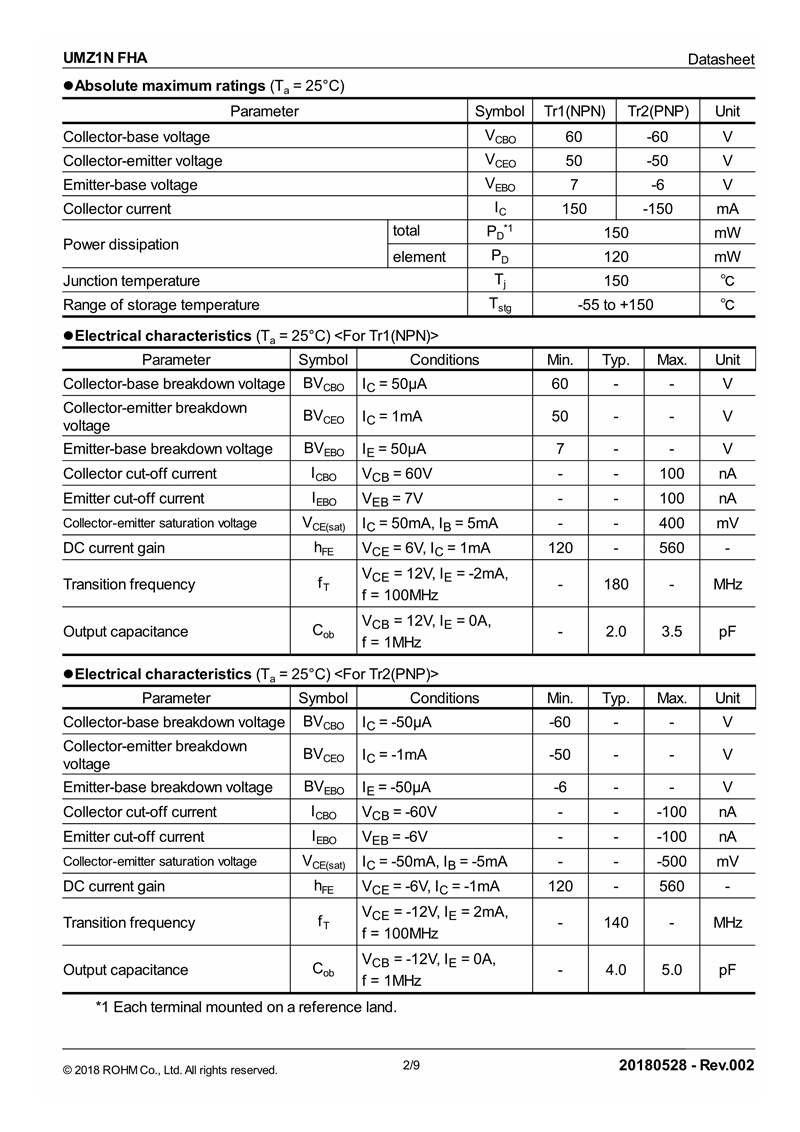 羅姆復合晶體管(BIP+BIP) UMZ1NFHA