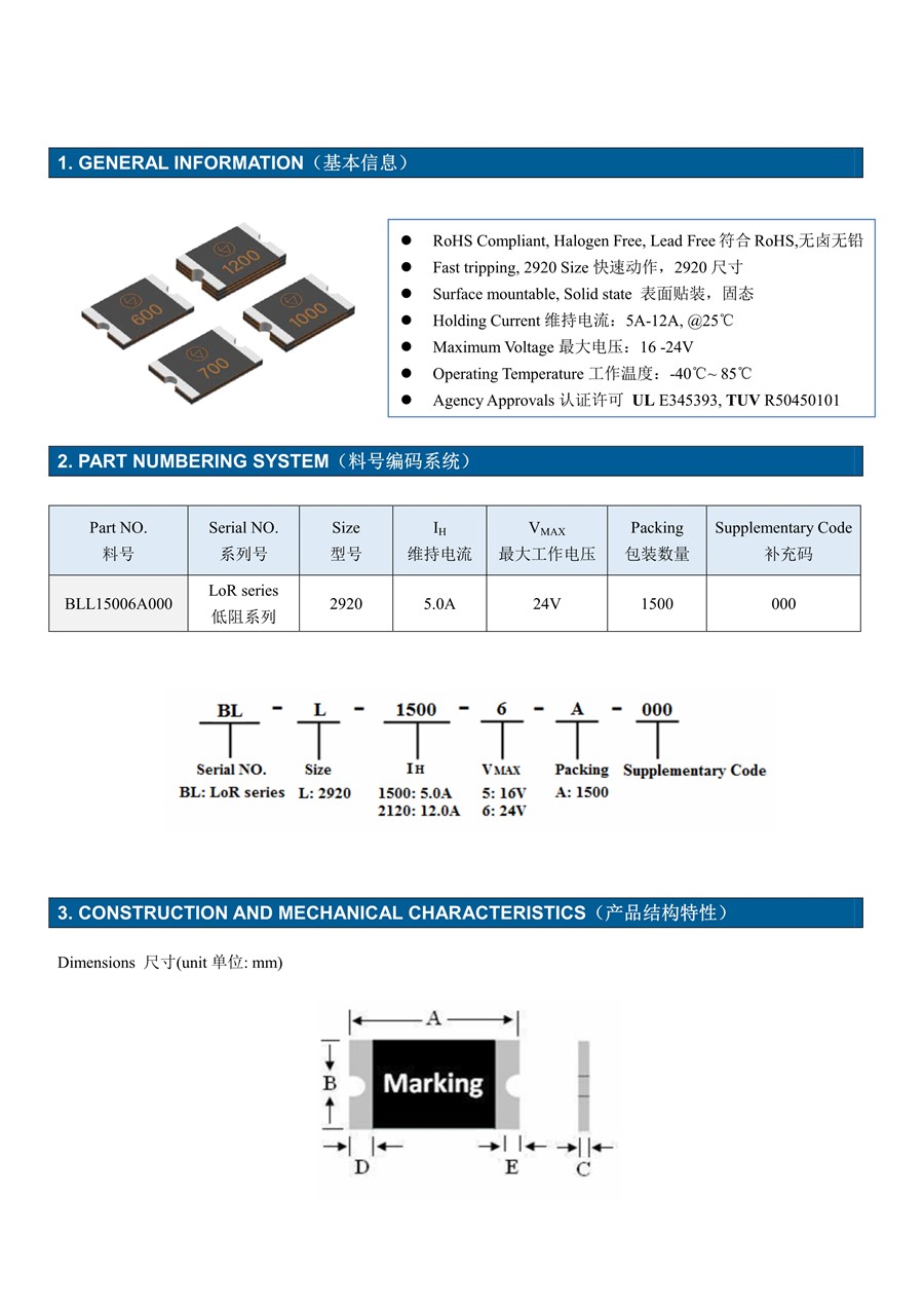 貝特Better貼片自恢復(fù)保險絲No.BLL 2920 PPTC 低阻系列