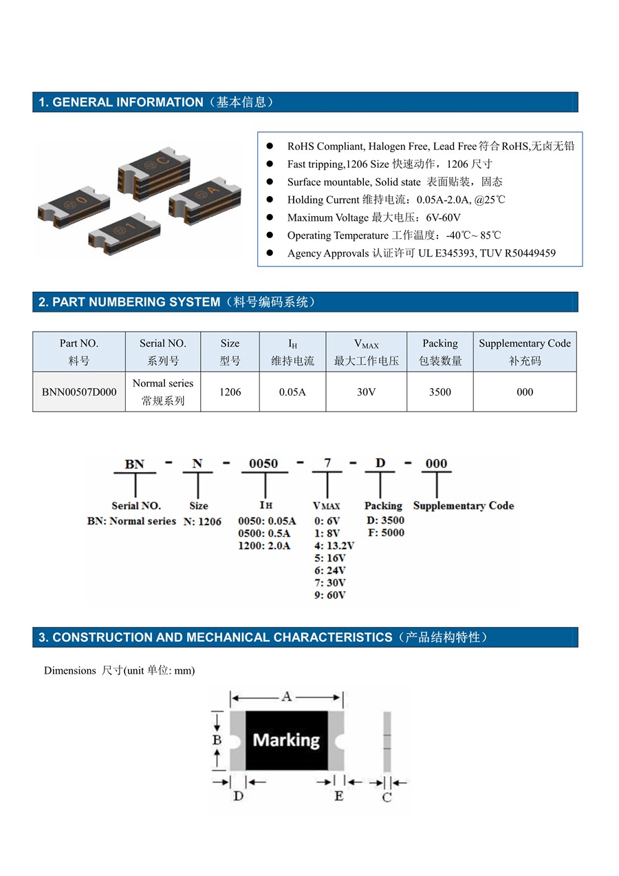 型號:No.BNN 1206 PPTC 常規(guī)系列