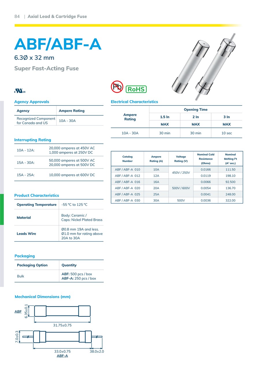 功得CONQUER軸向引線和墨盒保險(xiǎn)絲ABF/ABF-A