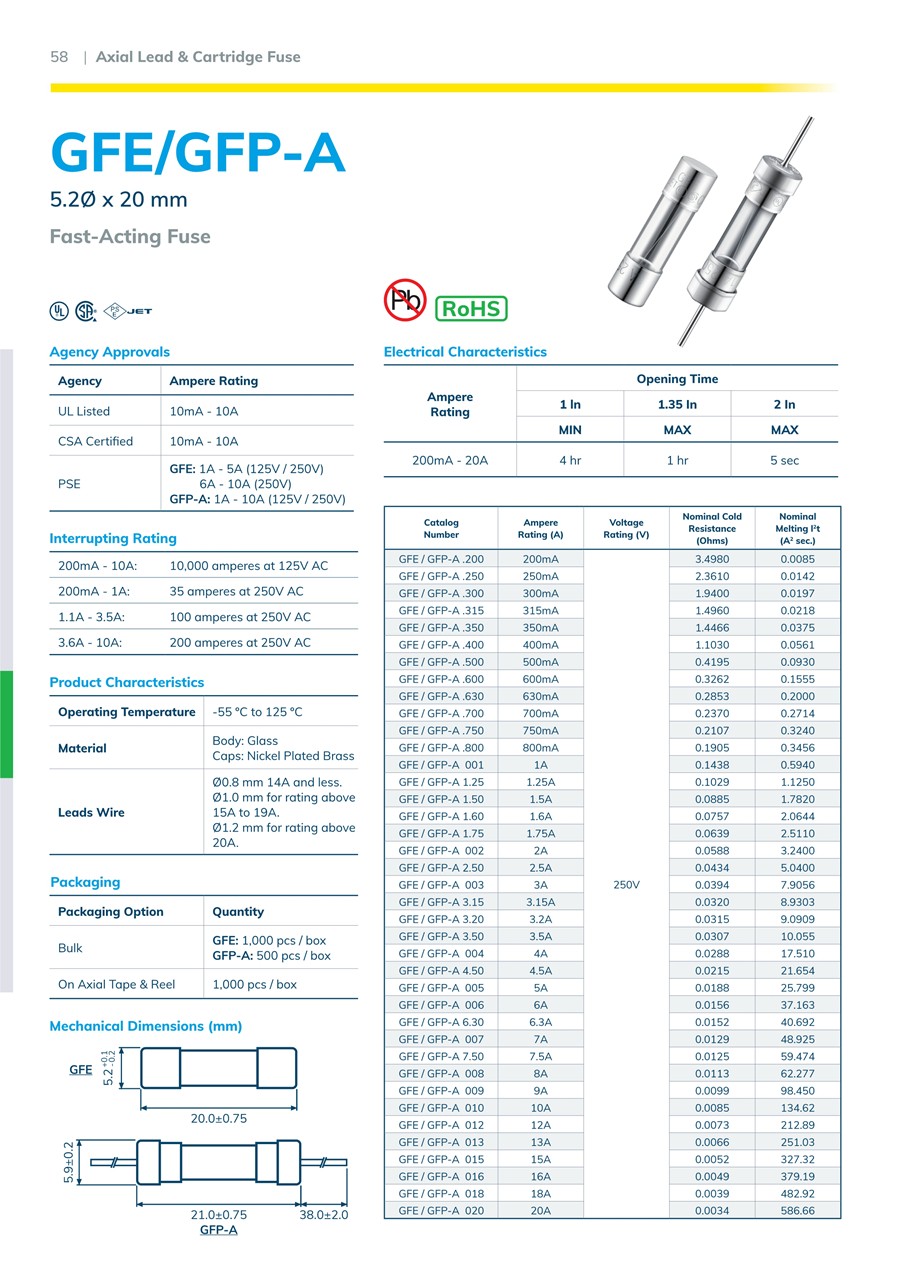 功得CONQUER軸向引線和墨盒保險(xiǎn)絲GFE/GFP-A