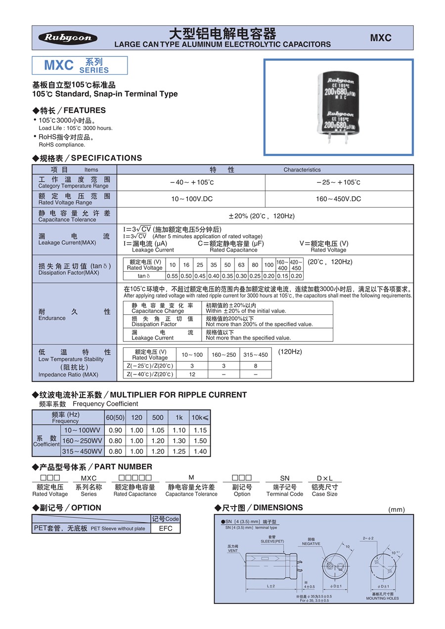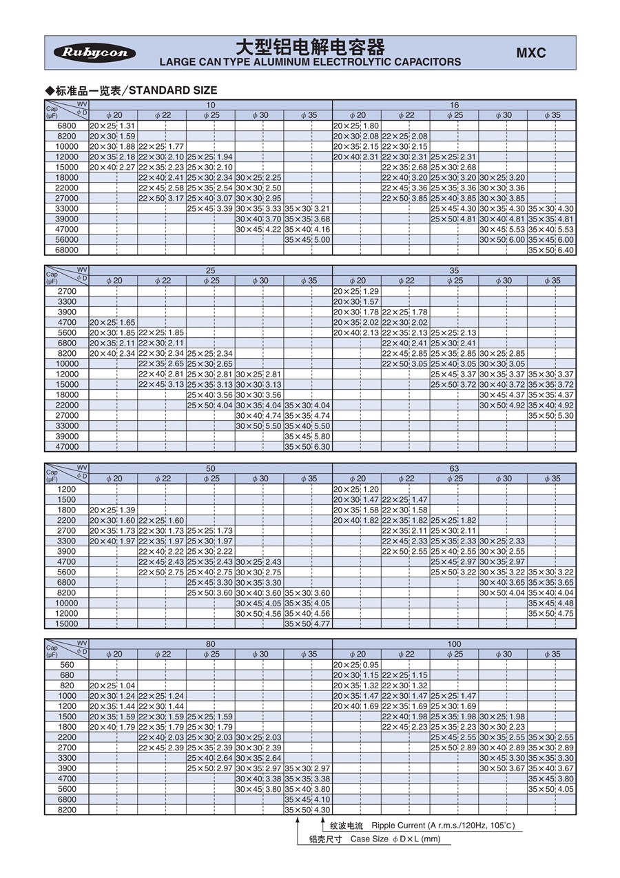 紅寶石RUBYCON大型鋁電解電容MXC系列