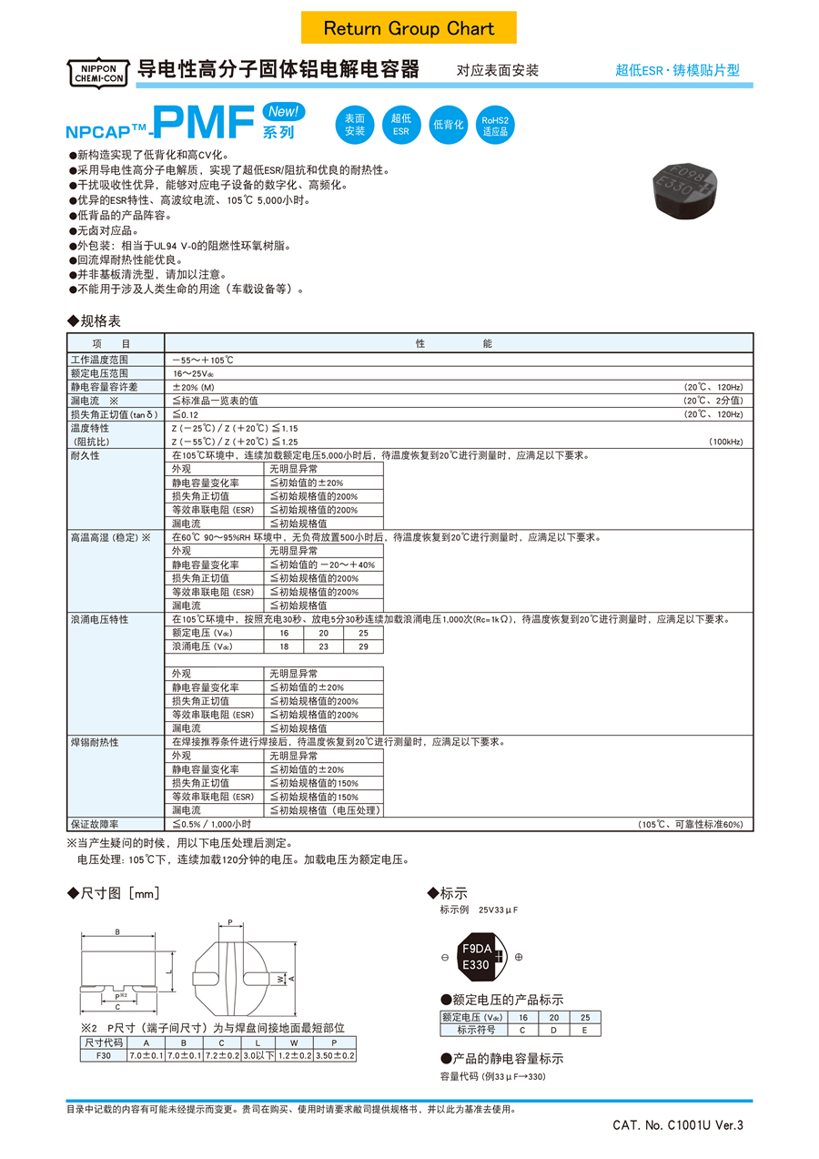 黑金剛CHEMI-CON導(dǎo)電性高分子固體鋁電解電容器PMF系列