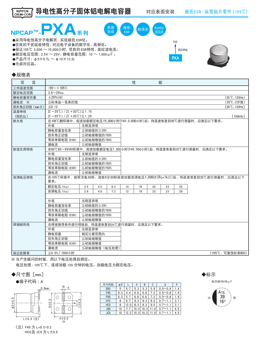 黑金剛CHEMI-CON導(dǎo)電性高分子固體鋁電解電容器PXA系列