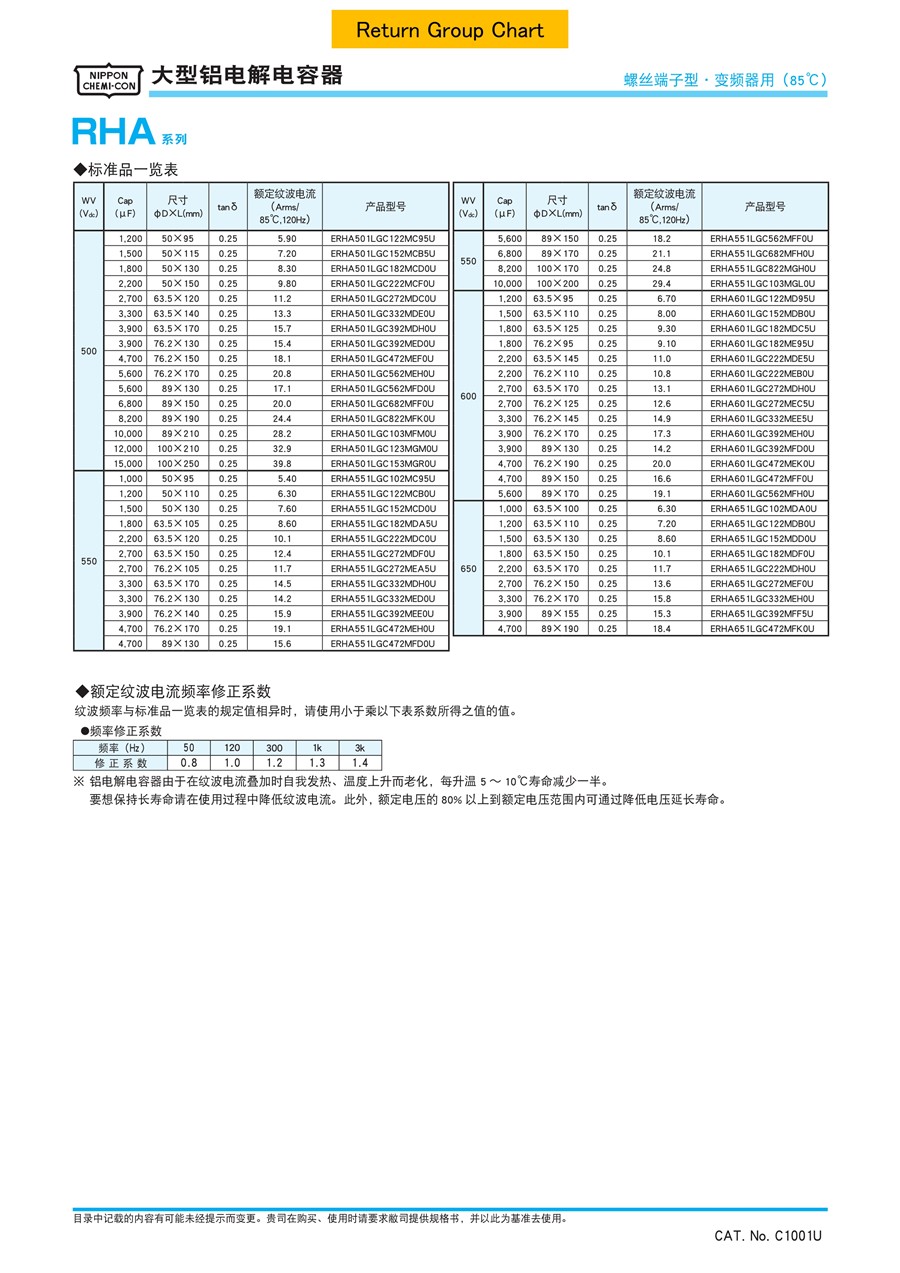 黑金剛CHEMI-CON導(dǎo)電性高分子固體鋁電解電容器RHA系列