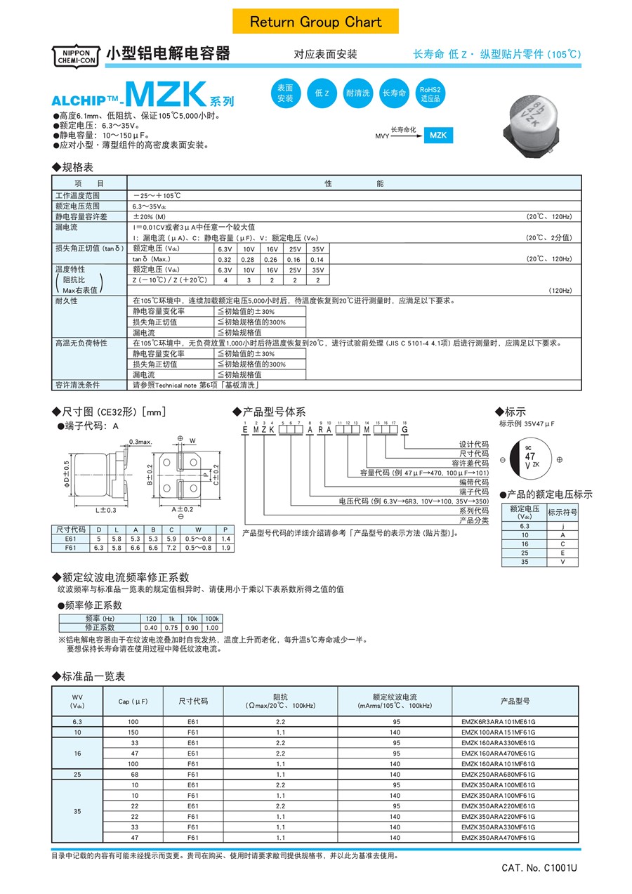 黑金剛CHEMI-CON導(dǎo)電性高分子固體鋁電解電容器MZK系列