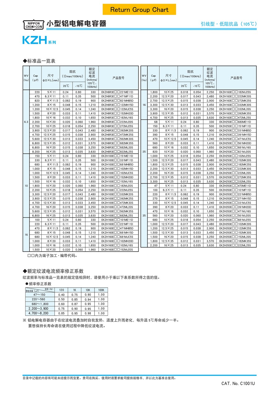 黑金剛CHEMI-CON導(dǎo)電性高分子固體鋁電解電容器KZH系列