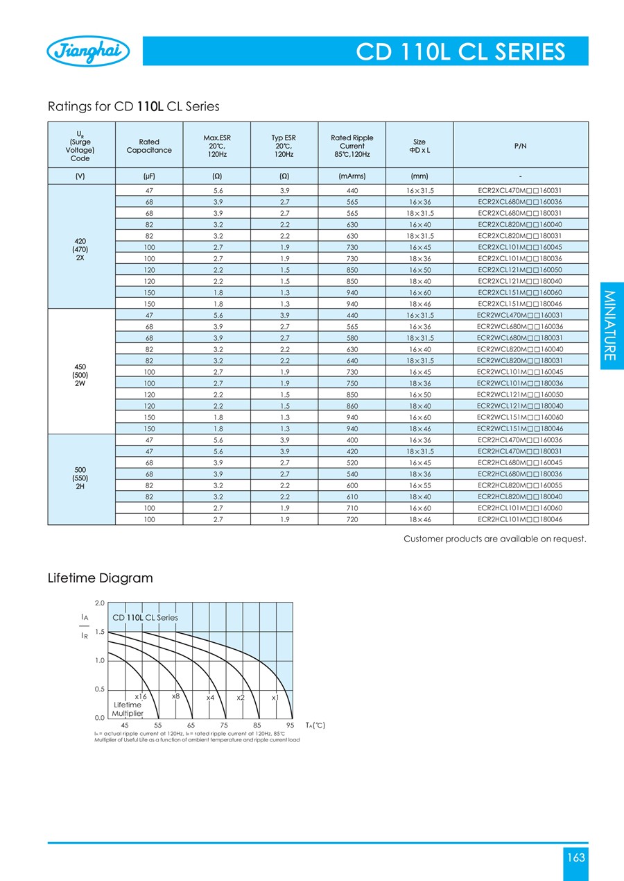 江海引線式鋁電解電容器CD110L系列