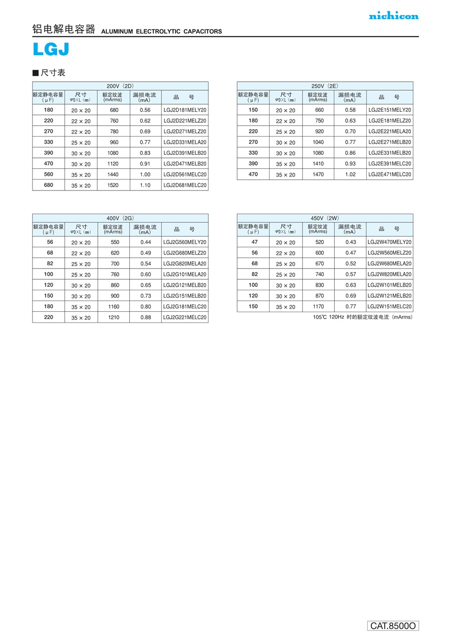尼吉康Nichicon大型鋁電解電容器LGJ系列