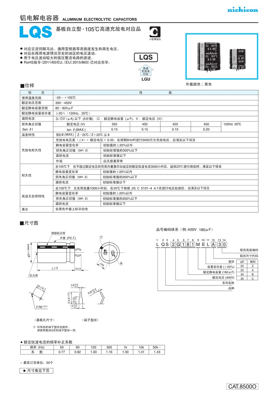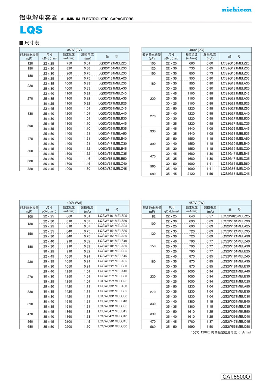 尼吉康Nichicon大型鋁電解電容器LQS系列