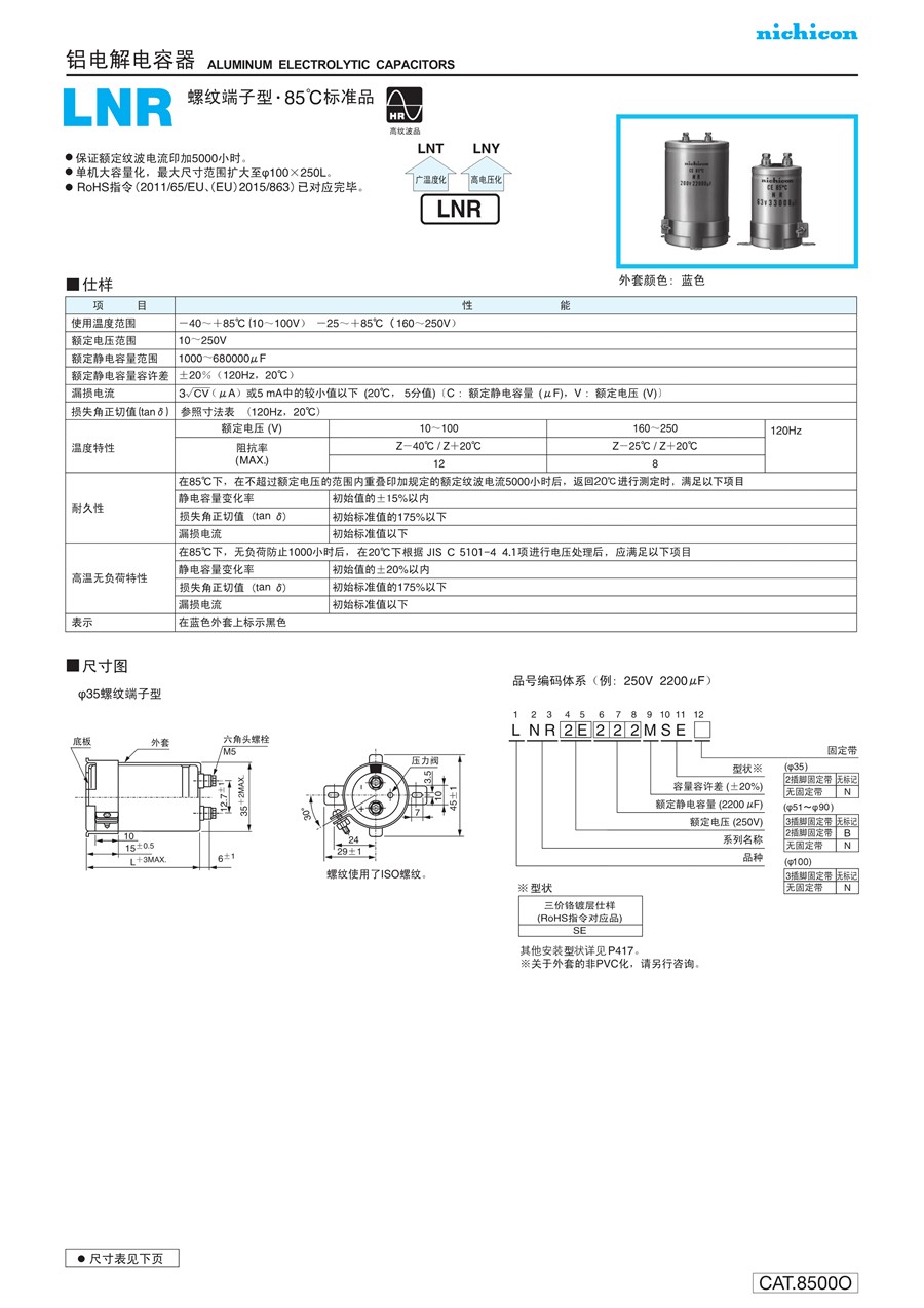 尼吉康Nichicon大型鋁電解電容器LNR系列