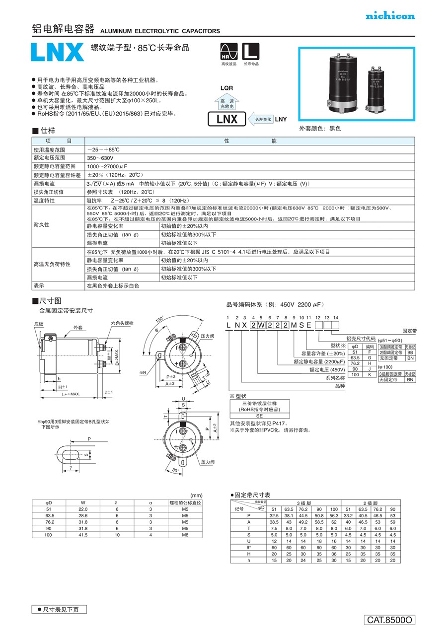 尼吉康Nichicon大型鋁電解電容器LNX系列