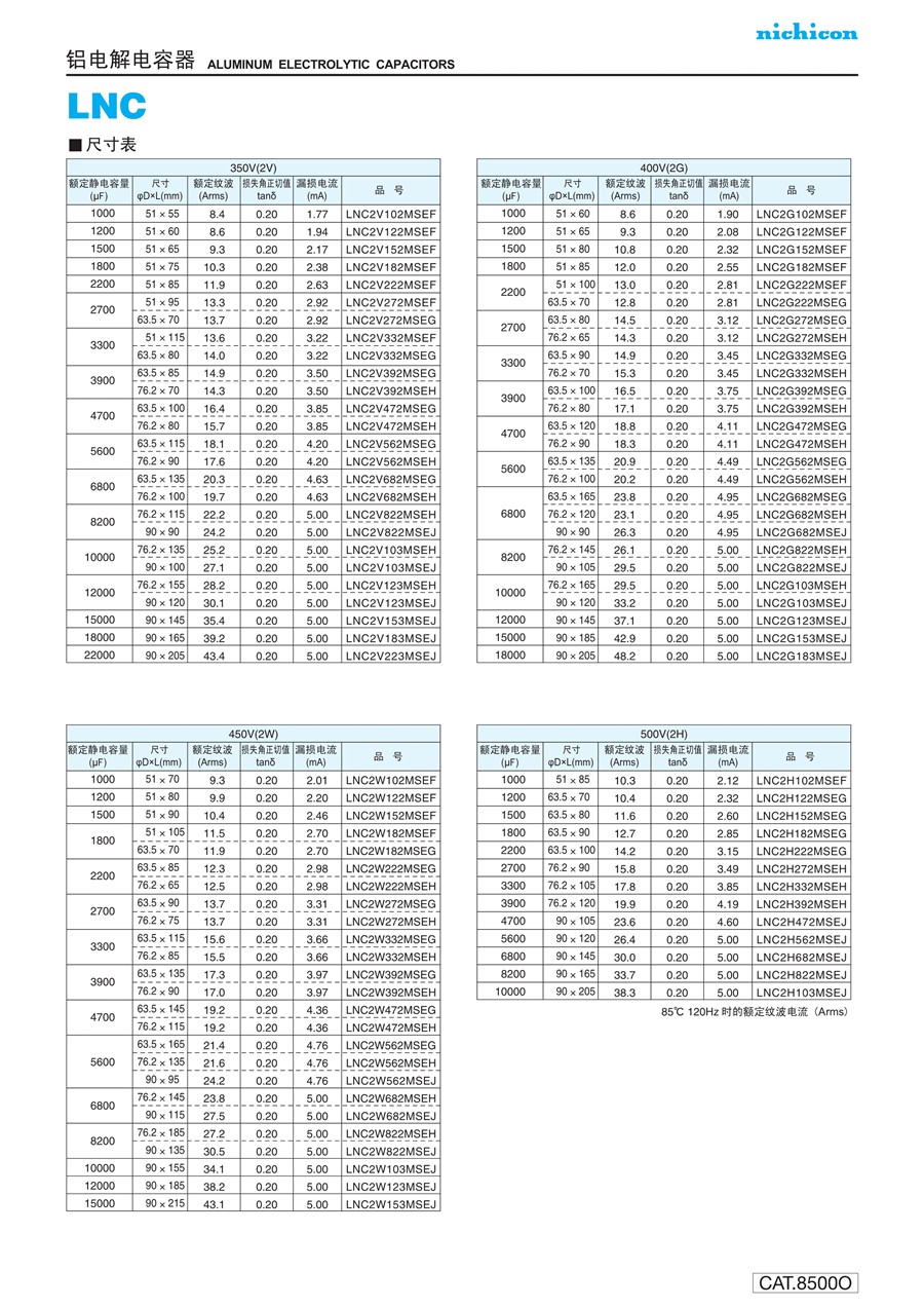 尼吉康Nichicon大型鋁電解電容器LNC系列