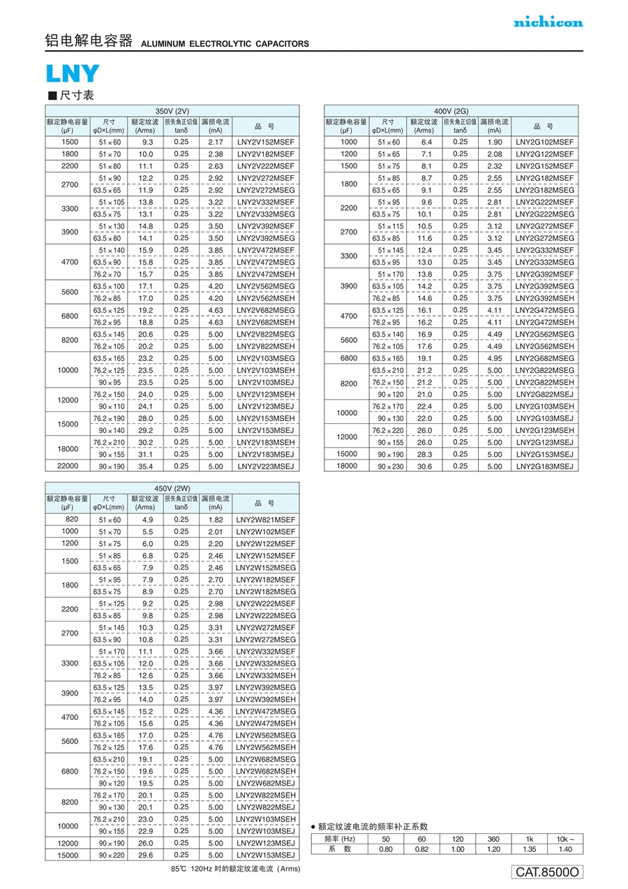 尼吉康Nichicon大型鋁電解電容器LNY系列