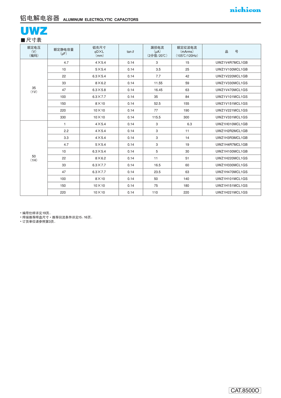 尼吉康nichicon芯片型鋁電解電容器UZR系列