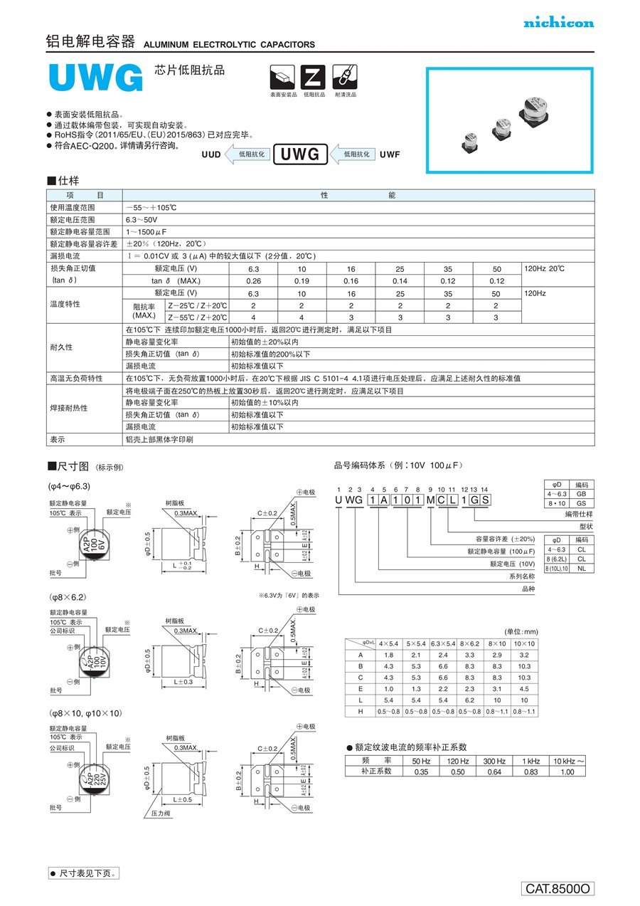 尼吉康nichicon芯片型鋁電解電容器UWG系