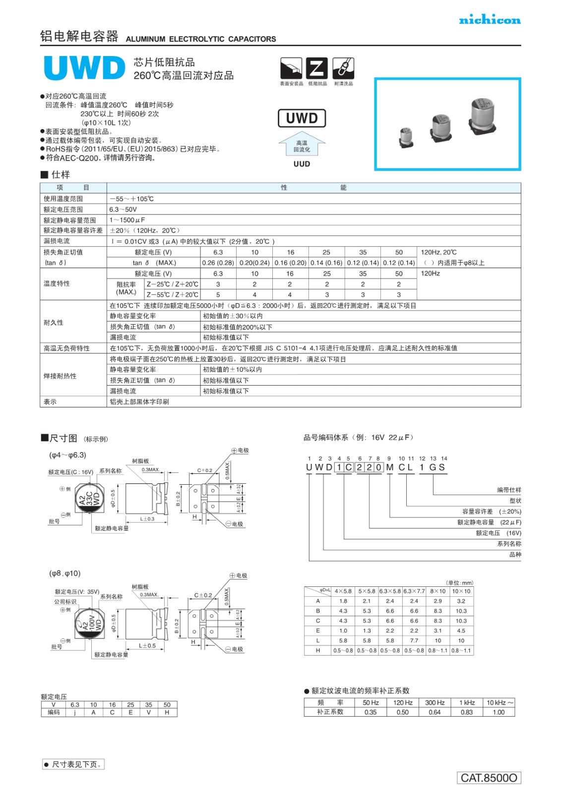 尼吉康nichicon芯片型鋁電解電容器UWD系列