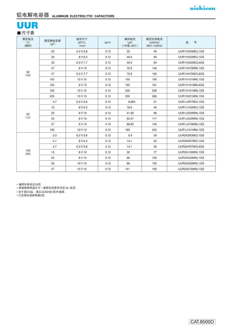 尼吉康nichicon芯片型鋁電解電容器UUR系列