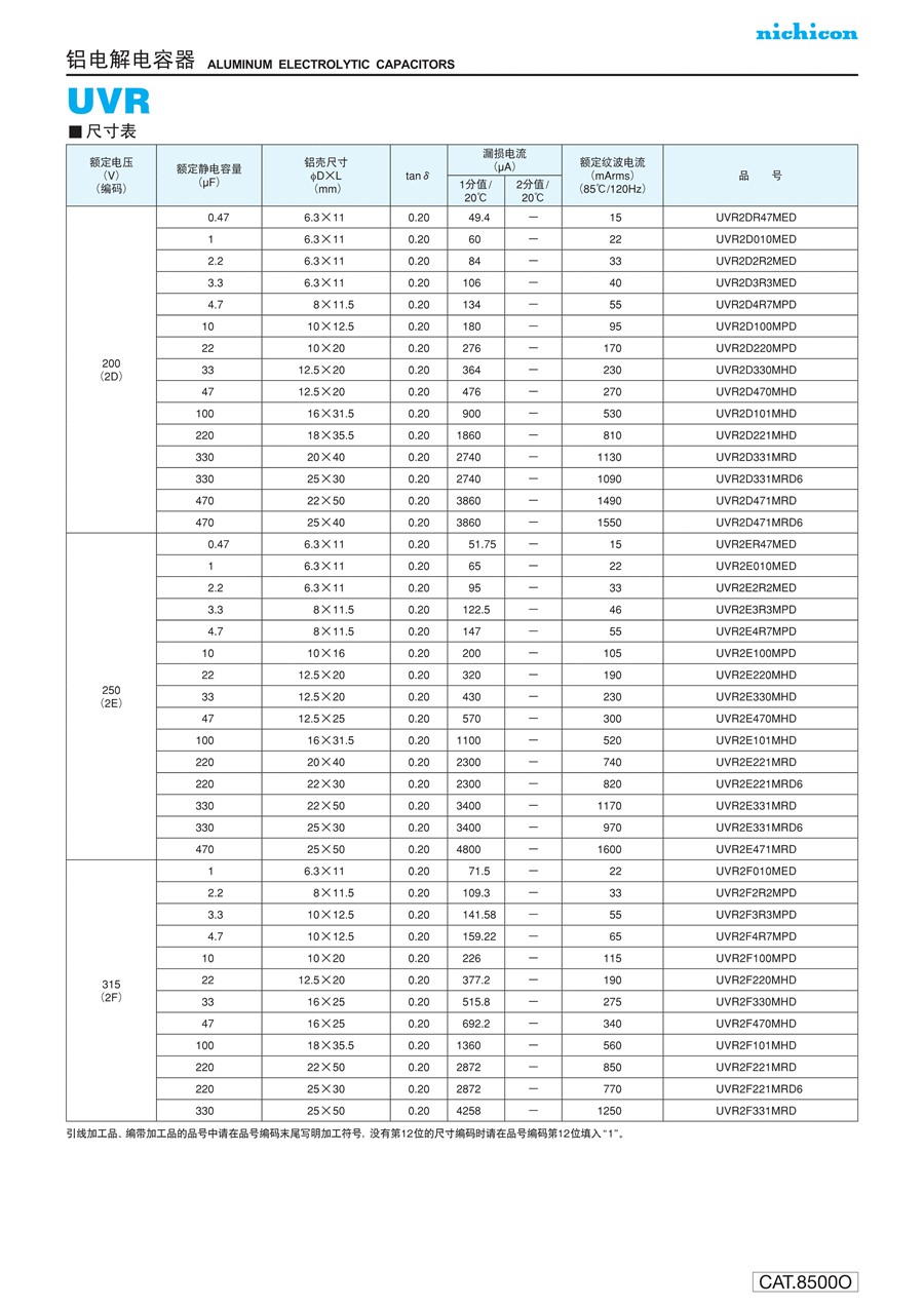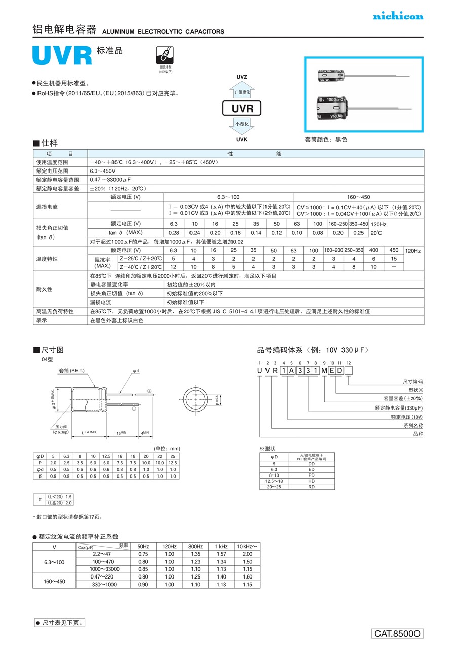 尼吉康nichicon小型鋁電解電容器引線型UVR系列