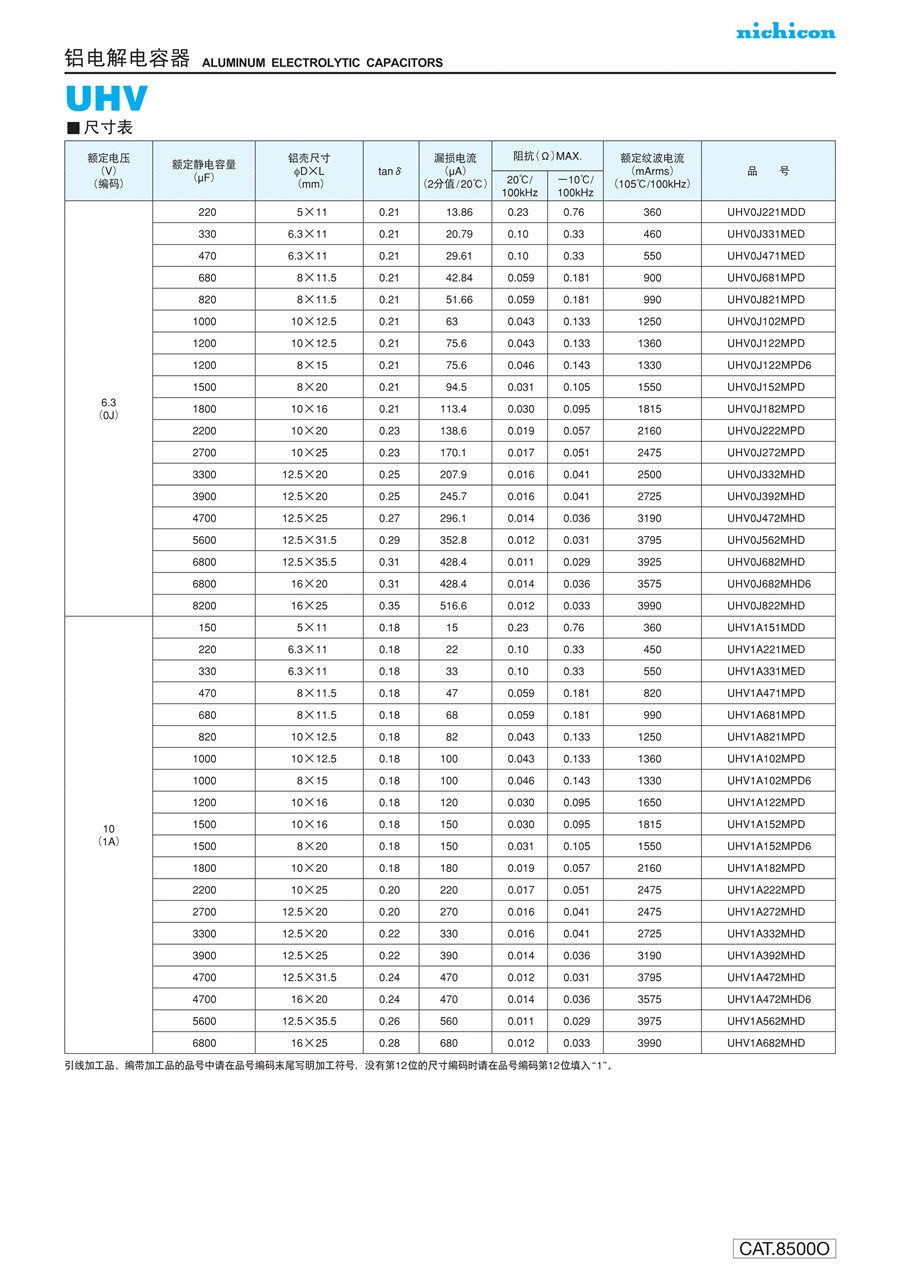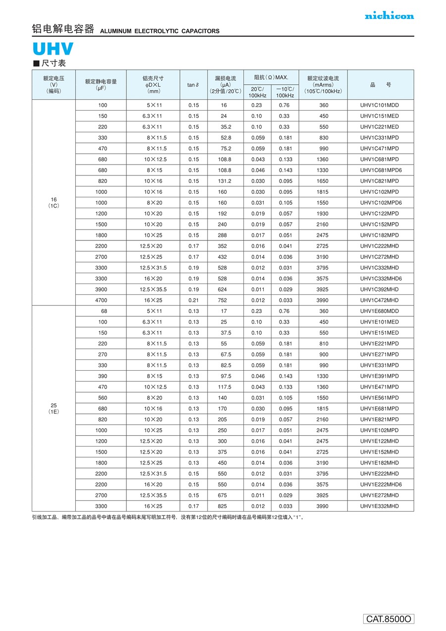 尼吉康nichicon小型鋁電解電容器引線型UHV系列