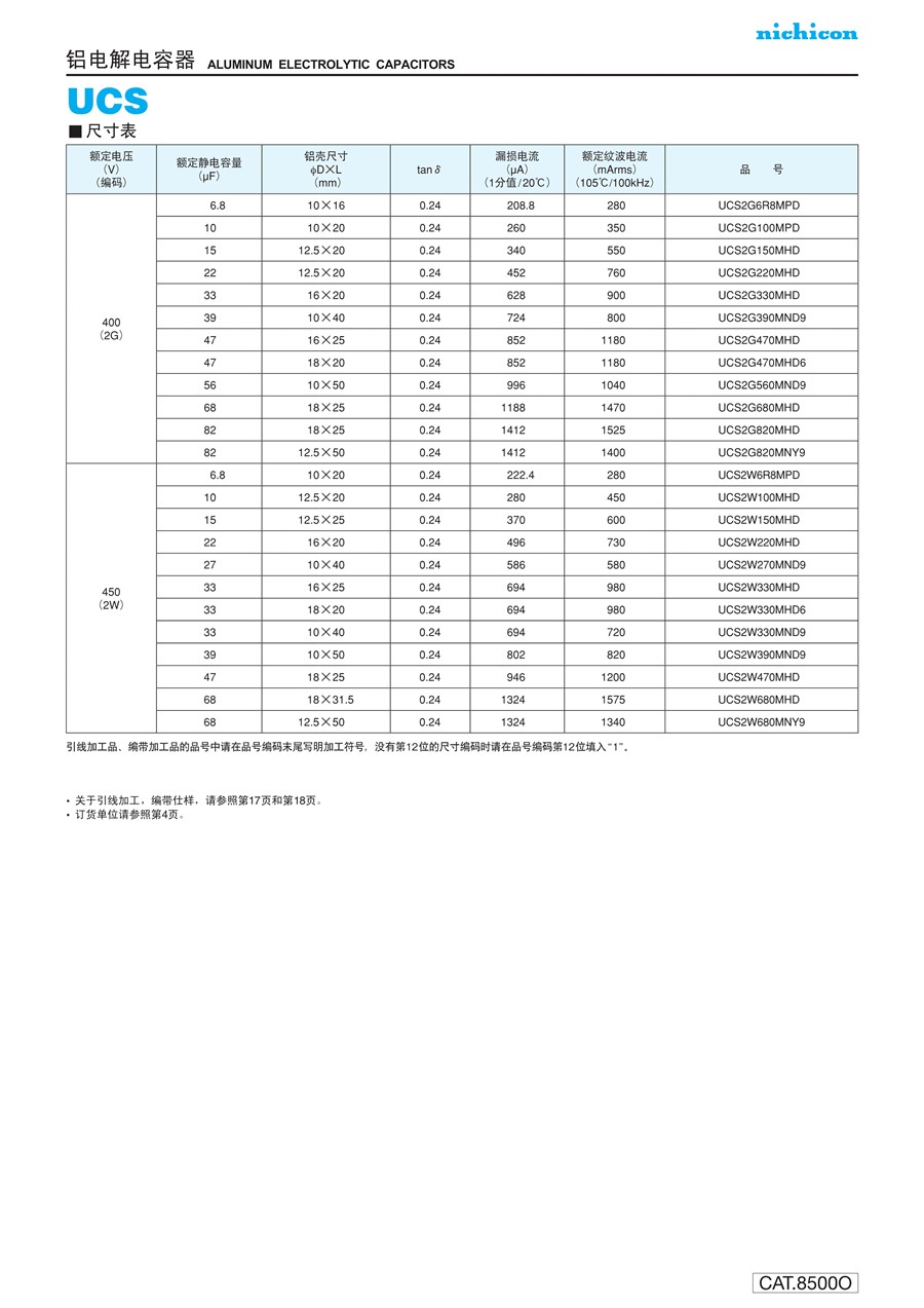 尼吉康nichicon小型鋁電解電容器引線型UCS系列
