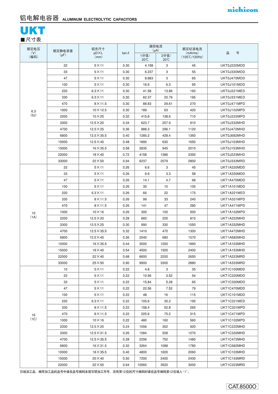 尼吉康nichicon小型鋁電解電容器引線型UKT系列
