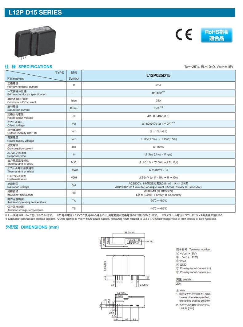 L12P025D15適用于中小型通用變頻器的最佳電流傳感器