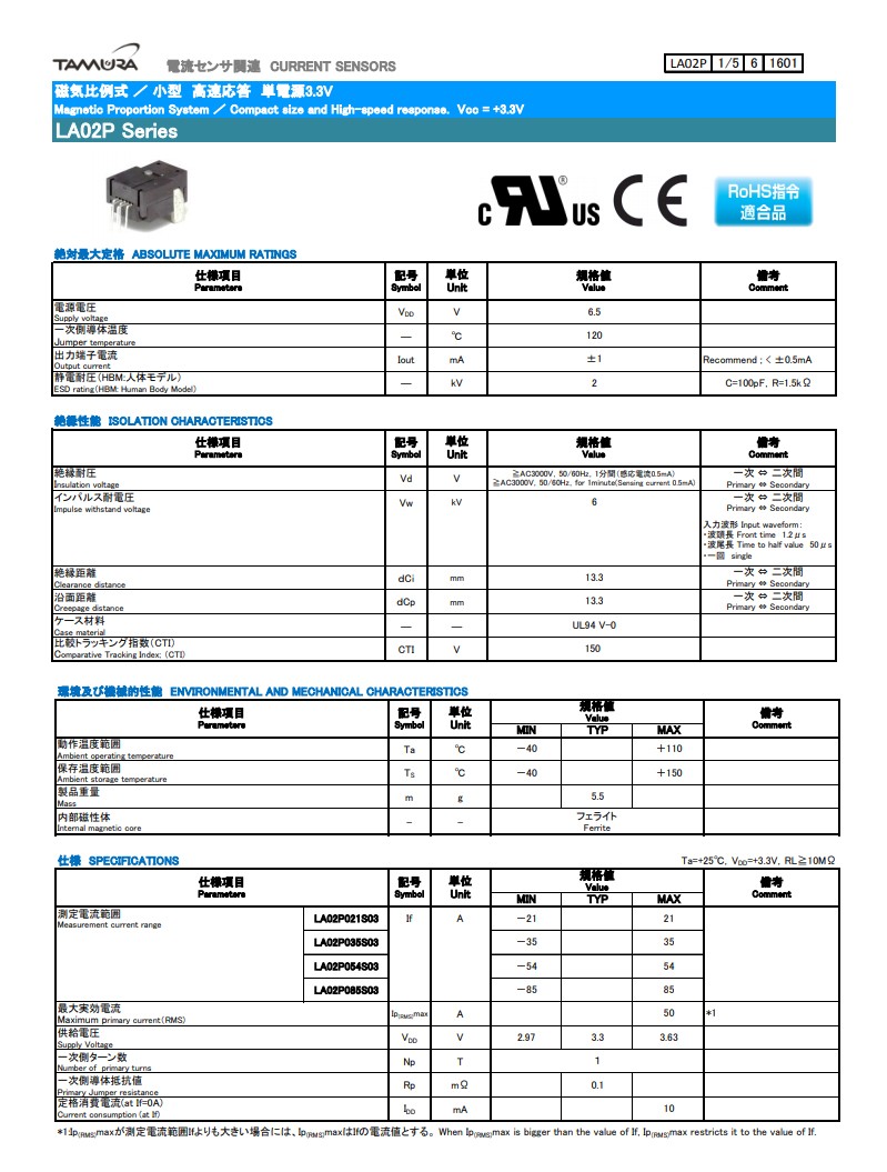田村tamura電流傳感器LA02P054S03