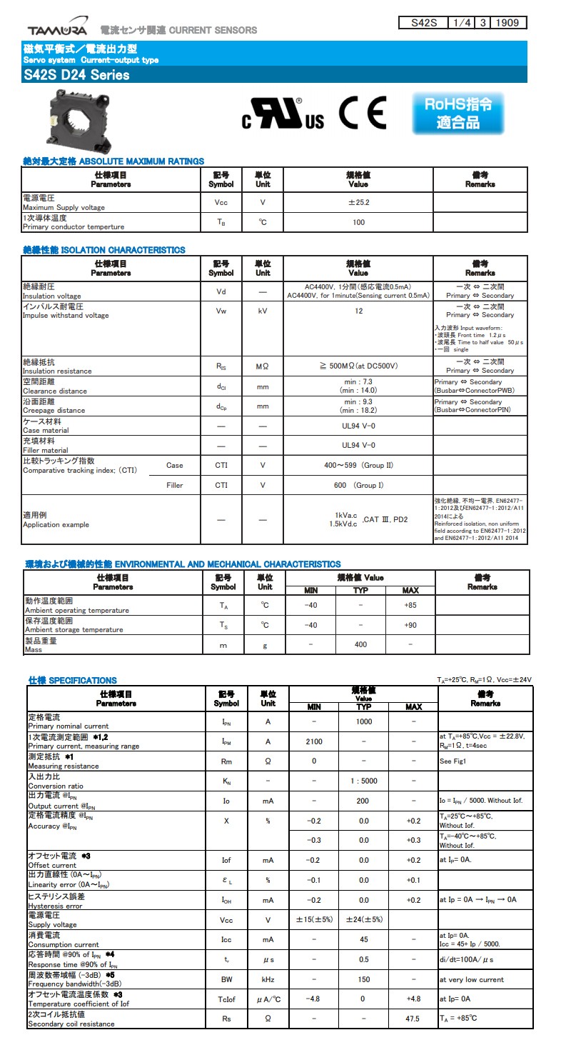 S42S1T0D24ZJ大容量逆變器的最佳電流傳感器