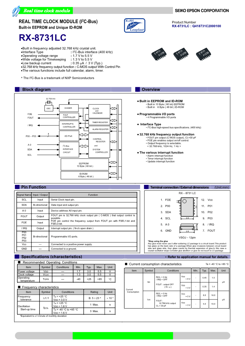 愛(ài)普生EPSON 晶振實(shí)時(shí)時(shí)鐘模塊(RTC)RX RX-8731LC