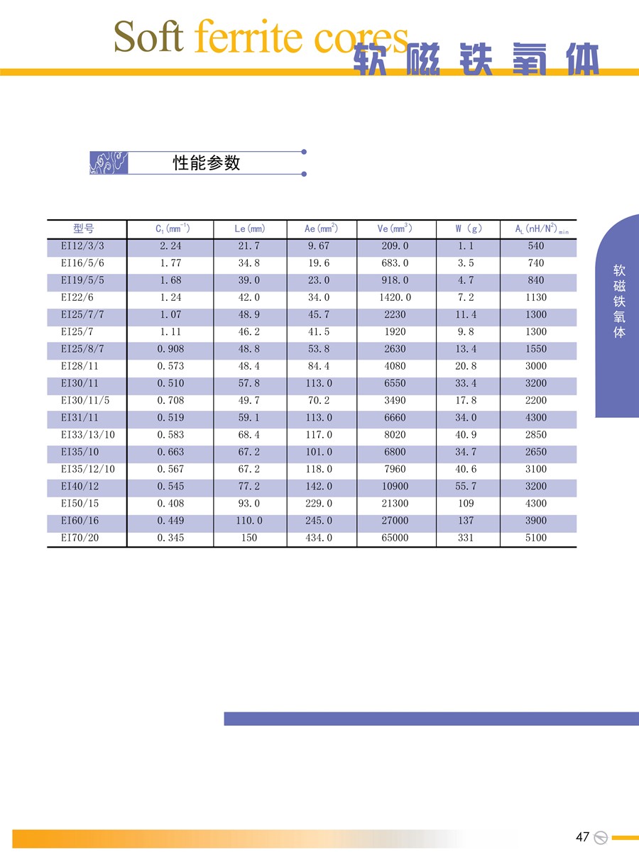 七星飛行軟磁鐵氧體EI型磁芯材料