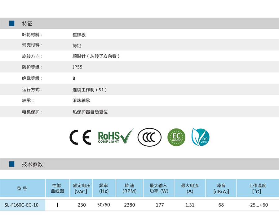 博樂(lè)EC蝸殼風(fēng)機(jī)SL-F160C-EC-10