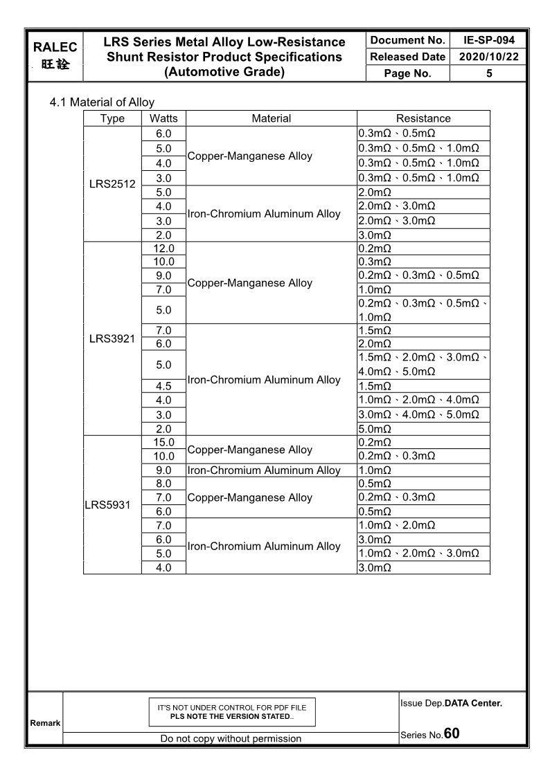 旺詮 貼片電阻車用等級芯片電阻車用金屬合金電阻LRS