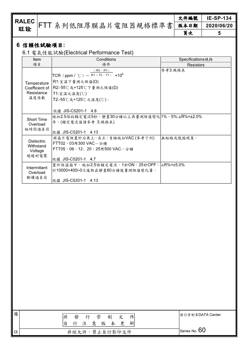 型號:FTT Low-Resistance