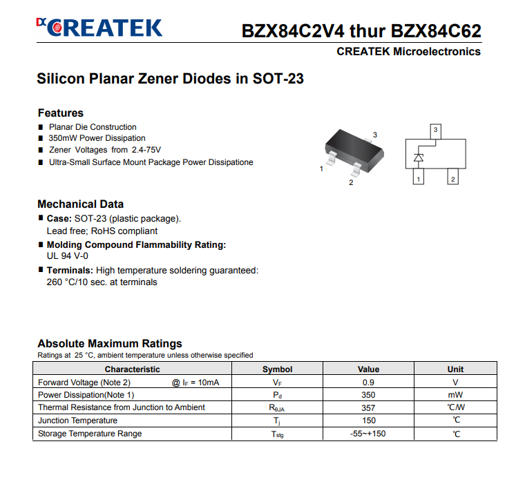 達(dá)晶微 二三極管 BZX84C2V4 thur BZX84C62