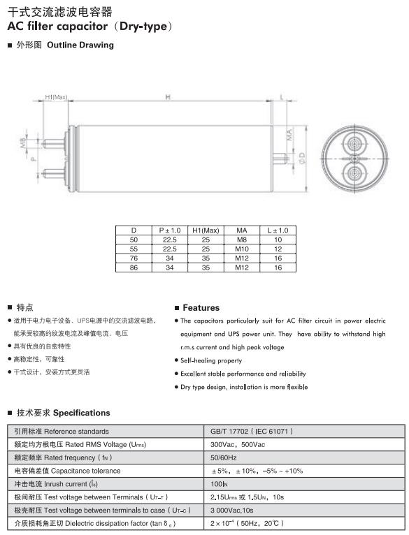 應用領域:?適用于電力電子設備、UPS電源中的交流濾波電路,能承受較高的紋波電流及峰值電流、電壓
