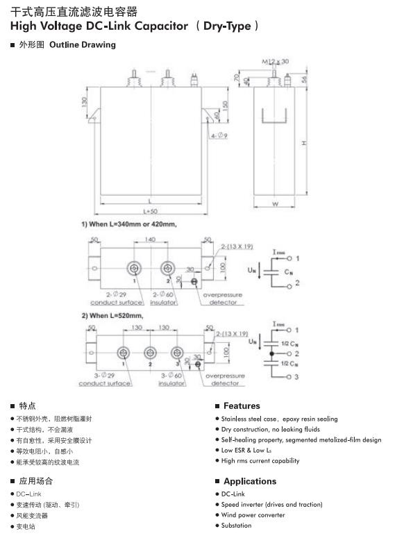 應(yīng)用領(lǐng)域:DC-Link 變速傳動(dòng)(驅(qū)動(dòng)、牽引) 風(fēng)能變流器 變電站