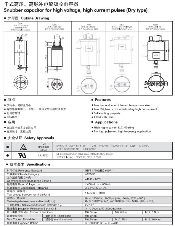 應(yīng)用領(lǐng)域:高紋波電流直流濾波應(yīng)用 ?高壓脈沖,高頻應(yīng)用