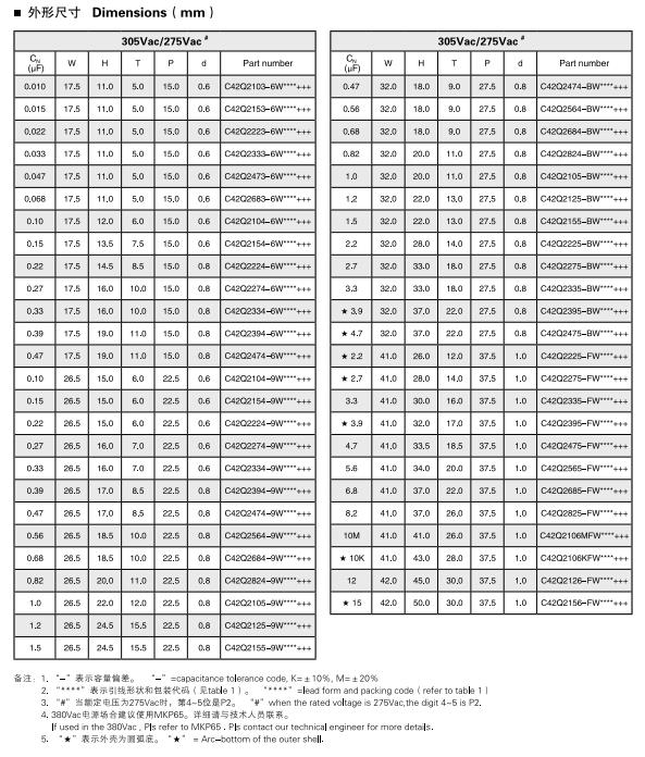 法拉 金屬化聚丙烯膜抗干擾電容器(X2類,THB防潮系列)C42