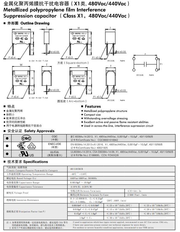 法拉金屬化聚丙烯膜抗干擾電容器(X1類,440Vac)C45