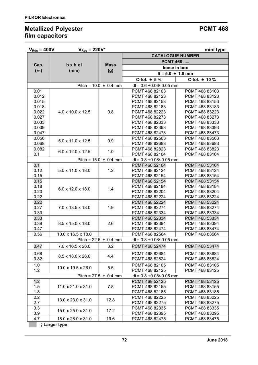 飛利浦PILKOR金屬化聚酯薄膜電容器PCMT 468