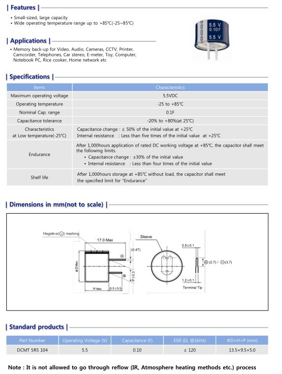 韓國高吉普Korchip扣式超級法拉電容 DCM5R5224