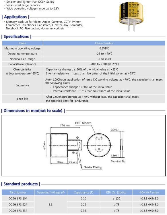 韓國高吉普Korchip扣式超級(jí)法拉電容 DCSH6R3104