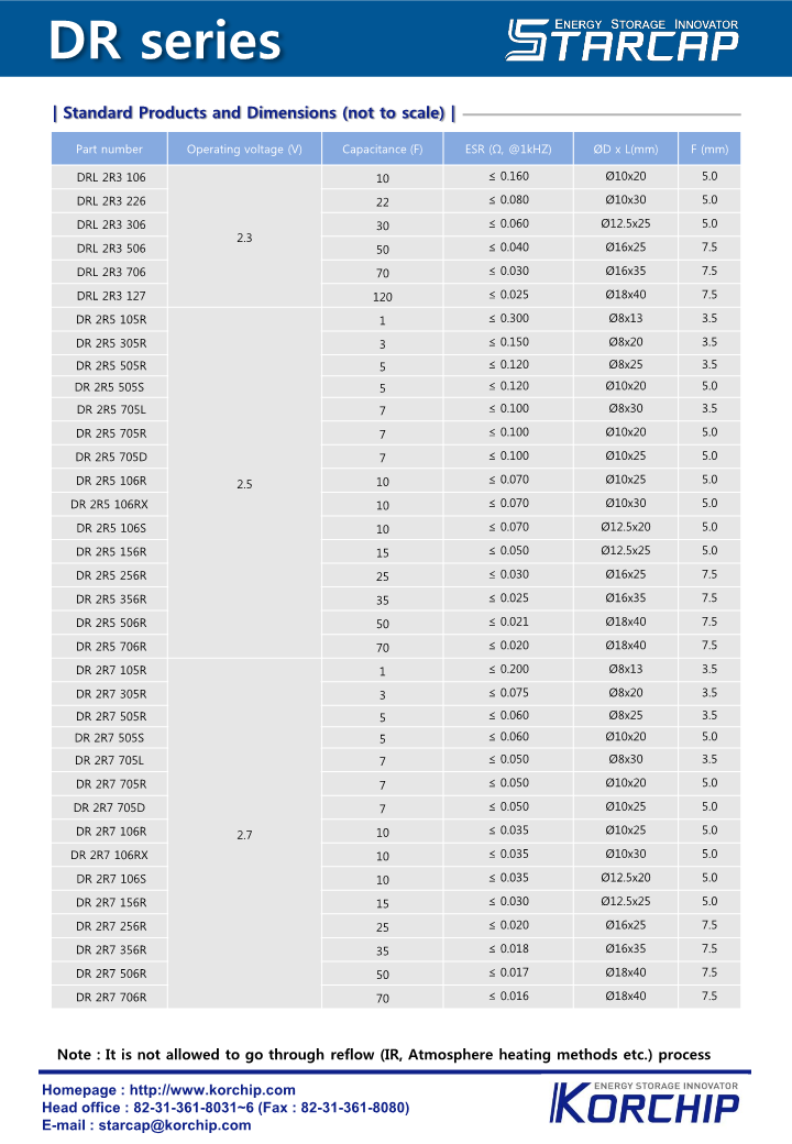 韓國高吉普Korchip扣式超級法拉電容 DR2R5105R