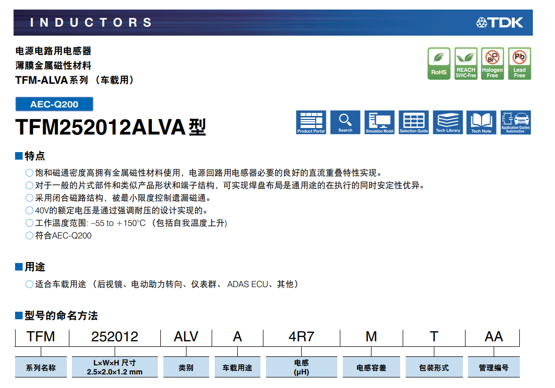 TDK電感電源電路用車載等級 TFM252012ALVA
