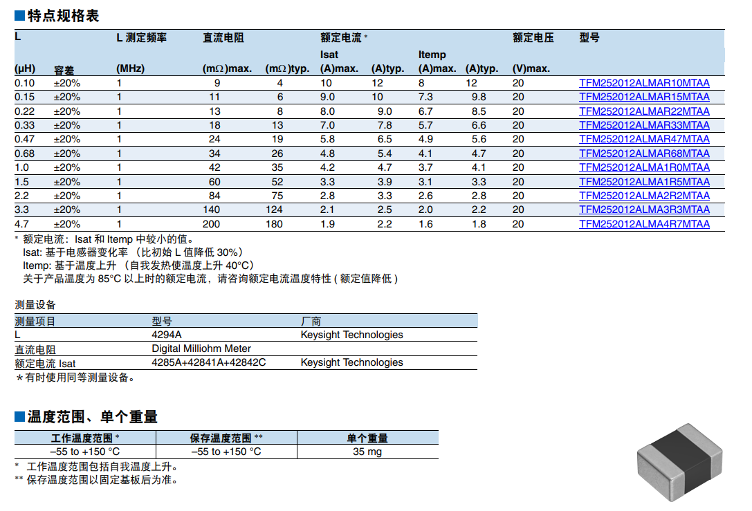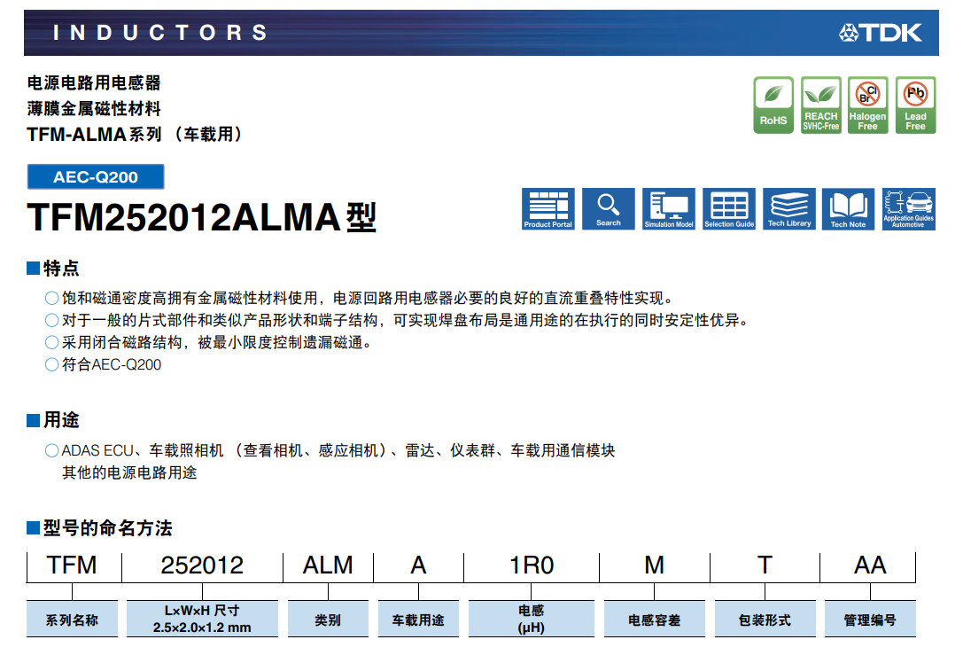 TDK電感電源電路用車載等級 TFM252012ALMA